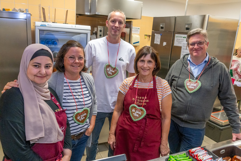Die Elternvertretung des Dietrich-Bonhoeffer-Gymnasiums steht mit Herz und Seele für die Schule ein – deshalb fehlt es unter den Eltern nie an helfenden Händen für die Schulcaféteria. Hier: Yasmin Al Zayab, Sonja Vater, Mark Lübbert, Theresa Piechotta und Lennart Höring (v. l. n. r.).