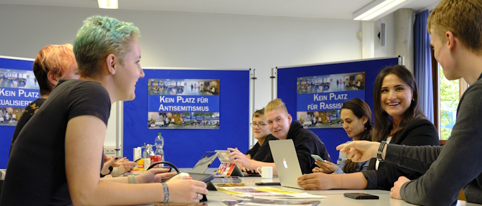 Immer wieder montags, nach der achten Stunde. Alle zwei Wochen kommt die Rassismus-AG an der Europaschule Schulzentrum S II Utbremen in Bremen zusammen. In dem Unterrichtsraum ist „Kein Platz für Antisemitismus“, auch nicht für Rassismus und sexualisierte Gewalt, das stellen mehrere Poster an Rolltafeln klar. Weitere Plakate informieren über die Hintergründe der „Black Lives Matter“-Bewegung und rassistische Anschläge wie den in Rostock 1992. Daneben sind unter dem Claim „Kein Vergessen“ die Porträts der Opfer rechtsextremer Gewalt in Deutschland seit 1945 abgebildet. „Wir versuchen, hier einen Rahmen für den Austausch zu all diesen Themen zu schaffen“, sagt Neziha Ciftci. Die 35-Jährige unterrichtet an der Europaschule, einer berufsbildenden Schule mit mehreren Wegen zum Abitur, Deutsch und Politik und ist zudem Fachgruppensprecherin Politik. „Dieses Engagement ist mein Beitrag zu einer demokratischen Schulkultur und zu einer inkludierenden politischen Schulbildung, in der sich möglichst viele Heranwachsende wiederfinden.“