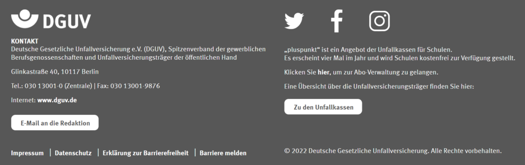 Die Seite und das Magazin pluspunkt sind von der DGUV.