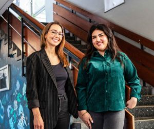 Die Sozialpädagogin Shaha Maliqi (links) ruft Eltern an, deren Kinder unentschuldigt fehlen. Ihre Kollegin Soraya Abdullah steht im Auszeitcafé für Gespräche mit den Jugendlichen bereit. „Das tut vielen sehr gut. Die Nachfrage ist groß.“
