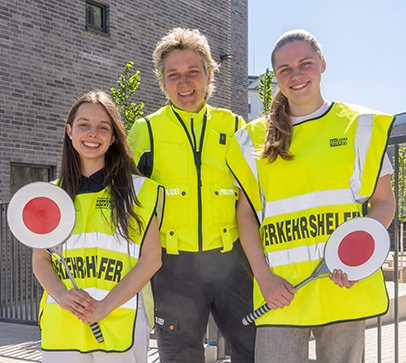 Die Schülerlotsinnen Emma und Sarah stärken den sicheren Schulweg am Gymnasium an der Schwertstraße in Solingen.